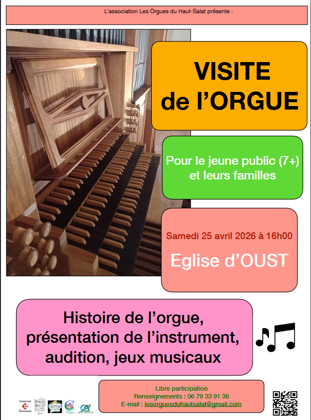 VISITE ORGUE 25 AVRIL 2026 8 avril 20268 avril 2026 10 h 17 min Navigation de l’article PREVIOUS PAGE Previous post: CONCERT DANSE 18 AVRIL ÉGLISE D’OUST SOIREE AU CAMPINGSOIREE AU CAMPING Lire la suiteLire la suite Rugby Journée découverteRugby Journée découverte Lire la suiteLire la suite Transport à la demandeTransport à la demande une nouvelle centrale de réservation régionale pour le transport à la demande (TAD) fonctionne depuis le 2 janvier 2024 et centralise les réservations pour la collectivité. Vous trouverez joint une Lire la suiteLire la suite